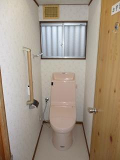 | 工事内容 | トイレの改修の上でまずは現地調査の時点で床下点検を実施させて頂きました。結果、床下の状態は良好な箇所が多かったですが、以前に白蟻の被害があった箇 所がいくつか見受けられましたので、内容の中に白蟻防除工事の方も提案させて頂きました。ただし玄関ホールの下部が基礎構造の関係上、潜れない状態にあったので床補修に重ねて点検口を作らさせて頂きました。またトイレ改修に併せて 開き扉の勝手も外開きに替えさせて頂き、導線面でも使いやすい仕上がりが実現 できました。使用したトイレはINAXの節水型トイレ ベーシア ピンク色で今までのイメージからガラっと変わる明るい仕上がりとなりました。 |