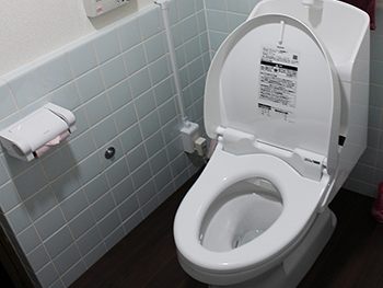 タイルを残し、バリアフリーにした上でTOTOの一体型トイレを設置しました |
