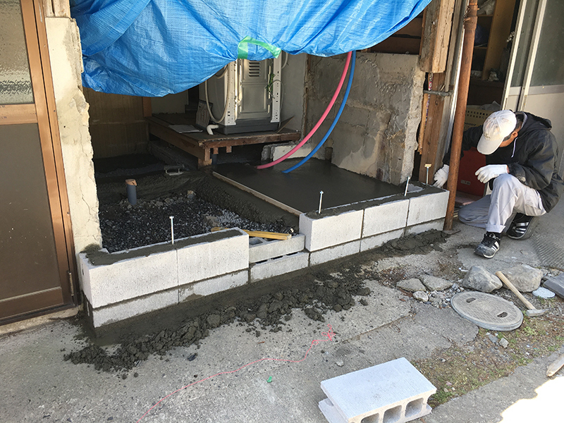 壊した外壁を新たに作るために基礎を作っています |