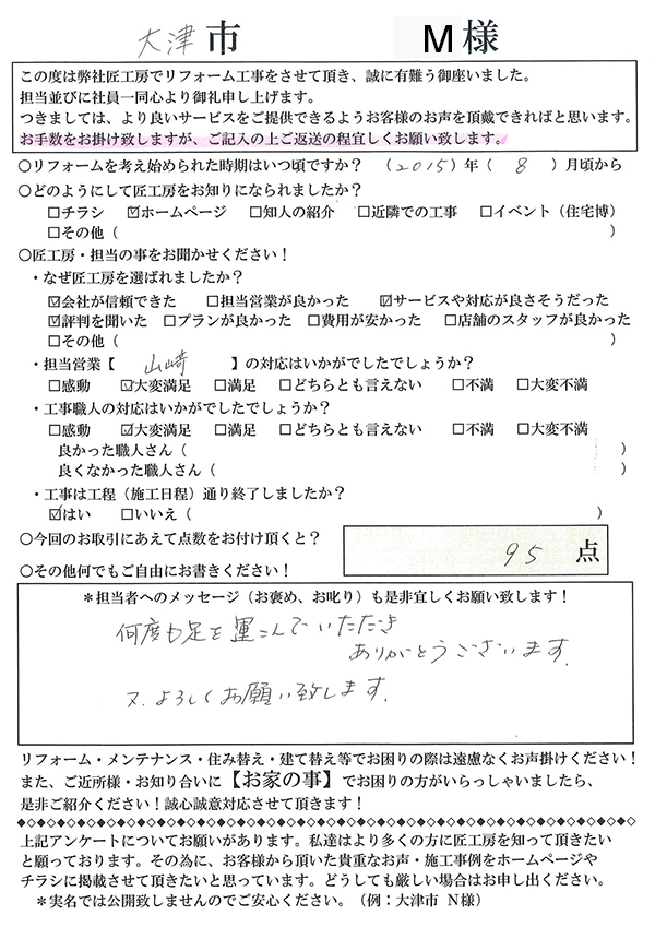 この度は、工事をお任せ頂きありがとうございました。