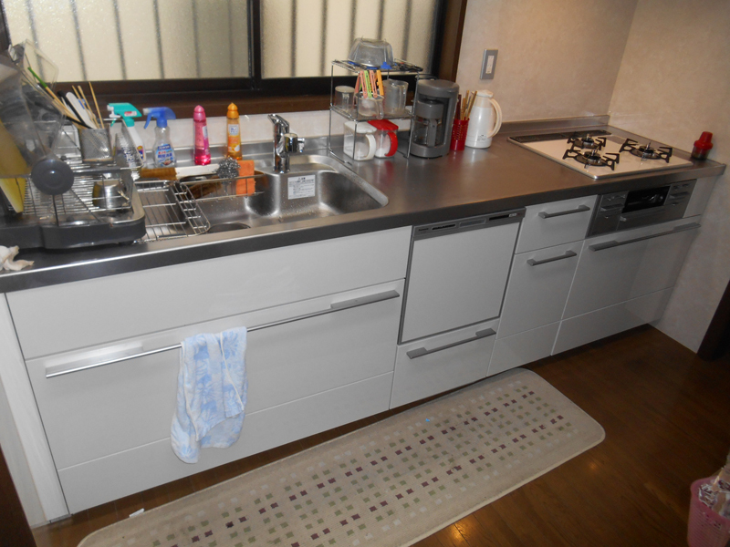 | 工事内容 | トイレは節水・節電の出来るTOTOのZJに交換しました。交換自体は2時間もかかりません。 キッチンはパナソニックのリビングステーションLクラスに交換しました。パナソニック中でもハイグレードのシリーズで、引き出しが一般的なグレードに比べ大きく出てくるので、引き出しの収納力が最大限まで活かされています。 今あるキッチンを解体し、タイルもめくります。そして水道・ガス・電気を新しいキッチンに合うように仕込み、キッチンパネルを壁に貼り、キッチンを収めます。最後に水道・ガス・電気を接続して完成です。 |