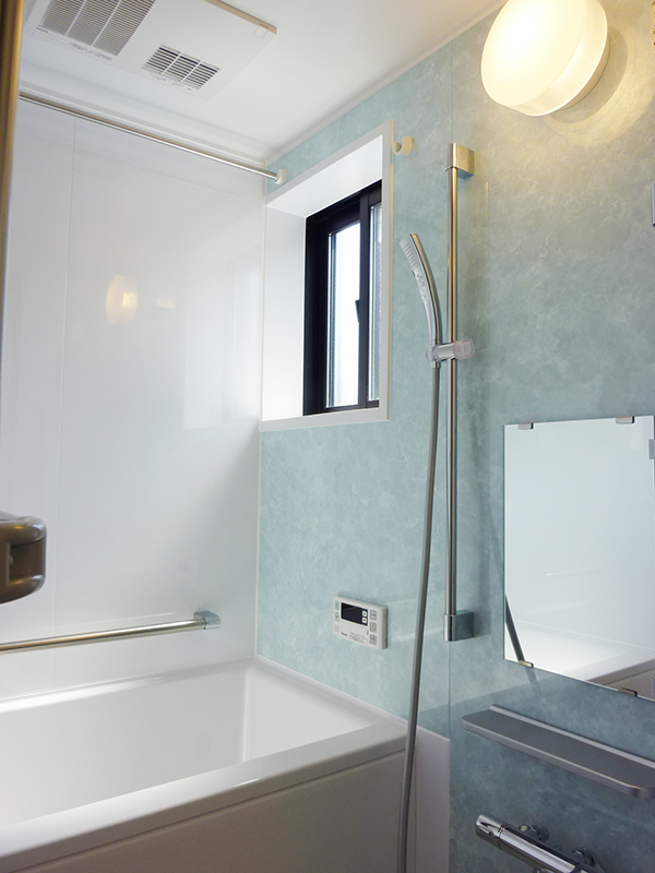 | 工事内容 | お風呂は、標準的な1216サイズよりも少し狭く、1115サイズを設置させて頂きました。前までのタイルのお風呂に比べ、気密性も上がりきれいな仕上がりになりました! キッチンはパナソニックの3連横並びのガスコンロを入れさせていただきました。 給湯器・洗面台・トイレも交換しました。 1階と2階の洋室はフローリングを上張りし、各部屋のクロスを張り替え、和室の襖張替、畳表替え、波板の新調もしました! キッチンの掃き出し窓は表通りからの視線が気になるとの事でしたので、風が通り、明かりも入るサイズの上げ下げ窓に交換しました。浴室のサッシも、現状はルーバー窓でしたが、ユニットバスに交換する際に引き違い窓に交換しました。両方ともペアガラスが標準仕様となっています。 |