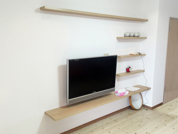 | テレビは壁に取り付けてあるのでスッキリして見えます |