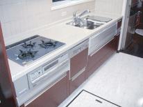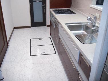 床のフローリングを大理石風にすることで、より高級感が出て、またキッチンが引き立ちました。