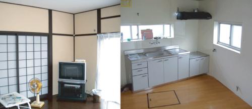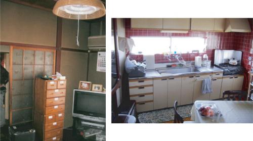 既存の壁はベルアート仕上げに、柱は塗装しなおして以前と違った“和”の部屋に。キッチンは部屋全体を明るく壁をクロスにし床も明るい色を選びました。