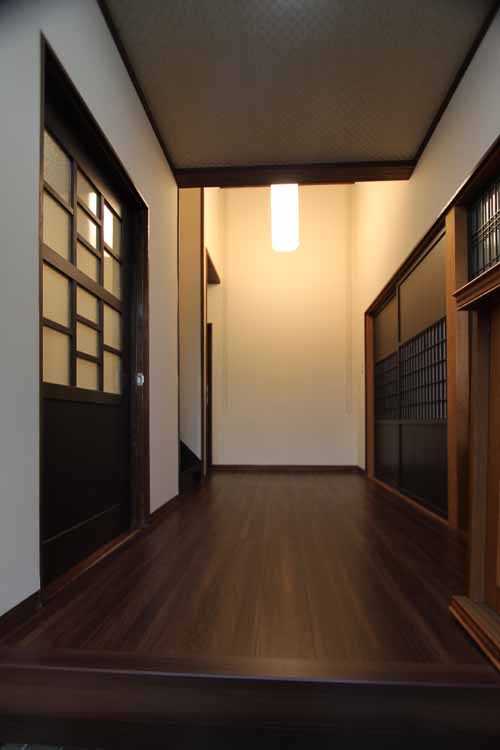 | 工事内容 | 近く結婚を控えた若夫婦の中古住宅リフォーム。 予算があまりないということで、間取りはそのままで建具や照明で雰囲気を大正風の古い感じの家にしていきましょうと提案しました。 奥さまは昔から古民家に憧れがあり、インターネットで建具を見たりするのが好きでした。こちらで寸法をキッチリお伝えして、建具や照明はお客様のチョイスで決定して頂きました。 選んで頂いた建具や照明は、どこか懐かしいと感じさせるものばかりで、うまく空間との調和も図れて低予算の中でうまく夢を実現させてあげることができたと思います。 |