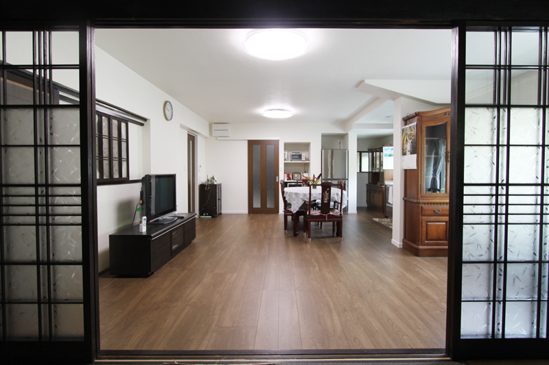 キッチン、お風呂、トイレなど水廻りの商品を一新したいとのご要望でした。娘さんご家族が帰省時にはお孫さん合わせて20人近くになる為にリビングは大きく取りたいという所が大きなご要望でした。