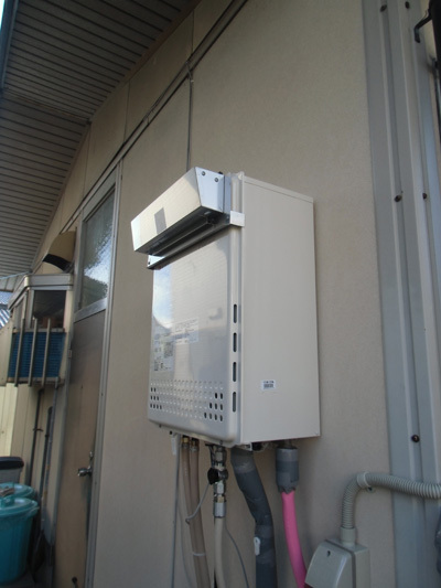 | 工事内容 | 当時よくあった、室内設置型のガス給湯器でしたので、安全性を考慮して外に出すようにしました。 また追炊きに関しては、追炊き専用風呂釜が設置してあったので、ガス給湯器本体でそれを賄えるようにして、メンテナンス及び安全性を重視した内容です。そしてお隣様を配慮してガス給湯器の排気の方向を上向きにしています。 |