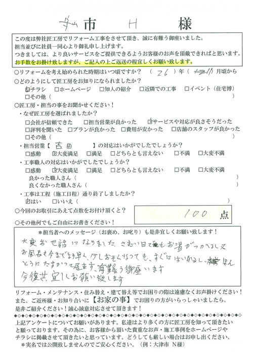 - 守山市 H様邸 給湯器リフォーム事例