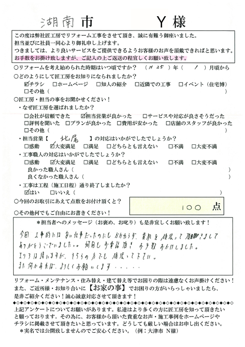 この度はご依頼頂きましてありがとうございました。