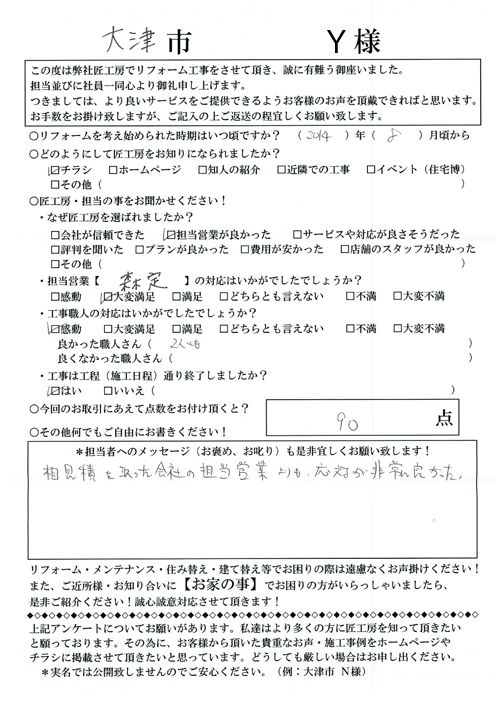 相見積を取った会社の担当営業よりも対応が非常によかったです!