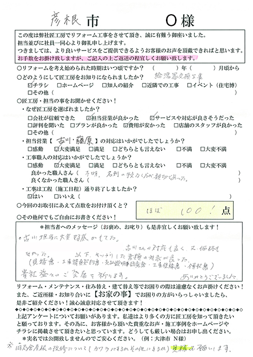 他社と比べ古川さんの対応も良く、又、価格も安かった。