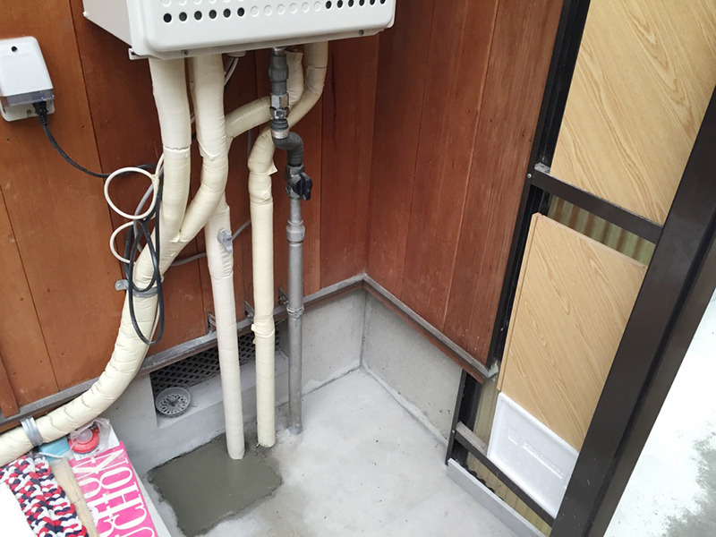 | 工事内容 | 給湯器を交換しました。 その際、配管が一つダメになっていたのでコンクリートを一部解体し、配管を入れ替え、コンクリートを補修しました。 |