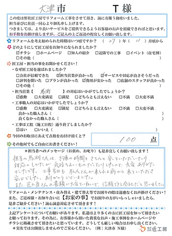 また、匠工房さんの書類が大変ていねいで、信頼できる会社だと思いました。