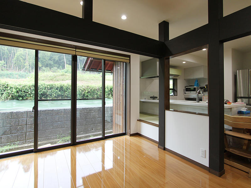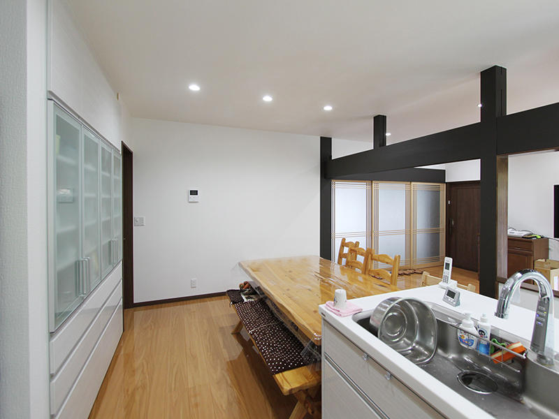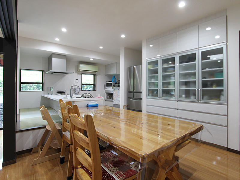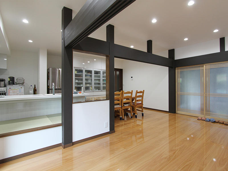 和室と縁側、更にダイニング・キッチンをつなげ、キッチンと収納の配置を見直し、より広く使いやすい空間を造りました。 |