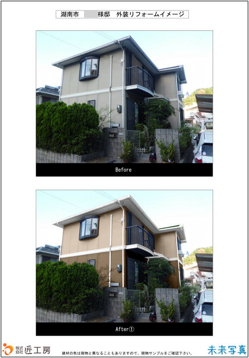 施工中、台風が3度ほど上陸し工期が少し伸びてしまい、N様には大変ご迷惑をお掛けしましたが綺麗なツートーンのお家になり、大変喜んで頂いて私まで嬉しくなりました。