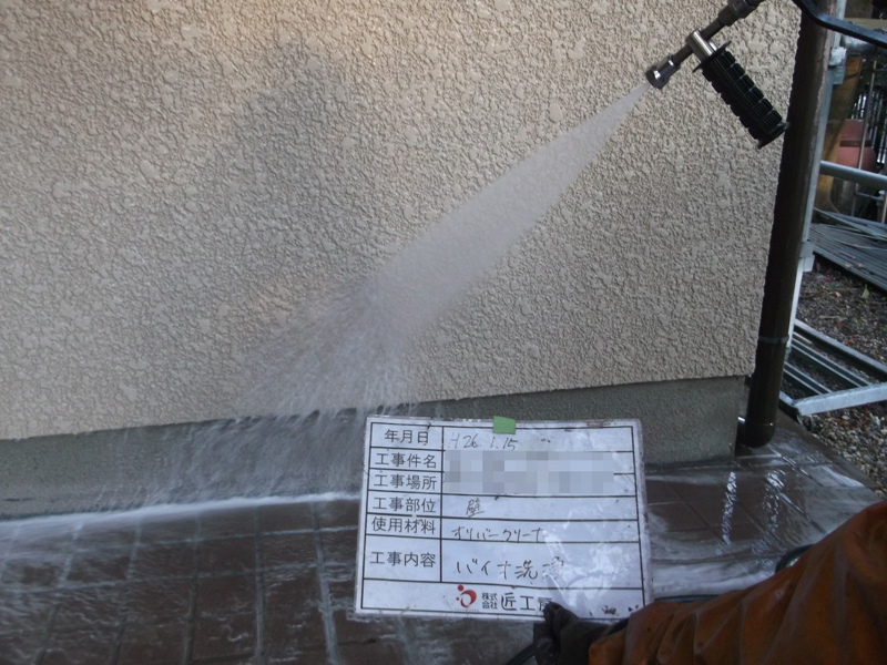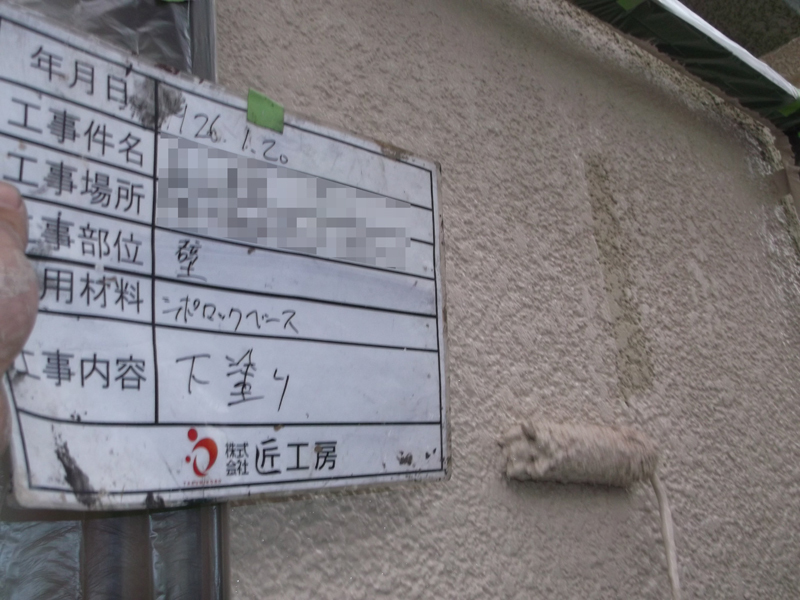 もともとの壁がスタッコ仕上げの壁でしたので職人さんと考えて、よく使うシリコン塗料よりもスタッコベースという塗料を選ばせて頂きました。