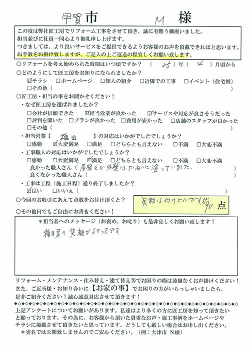 この度は工事をして頂きありがとうございました。