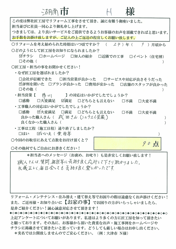 - 湖南市H様邸 外壁リフォーム事例