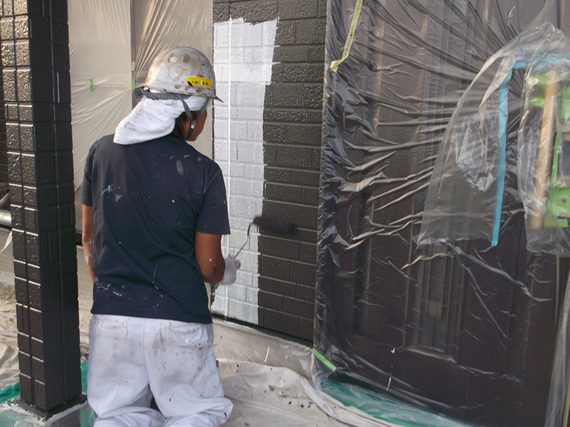 以前と同じように上下で色を変えました。上は明るくし、下は濃い色で引き締めたことによりバランスよく仕上がったと思います。今回は、外壁の塗装だけでなく、屋根の塗装とコーキングの打ち替えなどもあったため、長い間にわたり風が入らないなどご不便をおかけしましたが、協力してくださりありがとうございました!