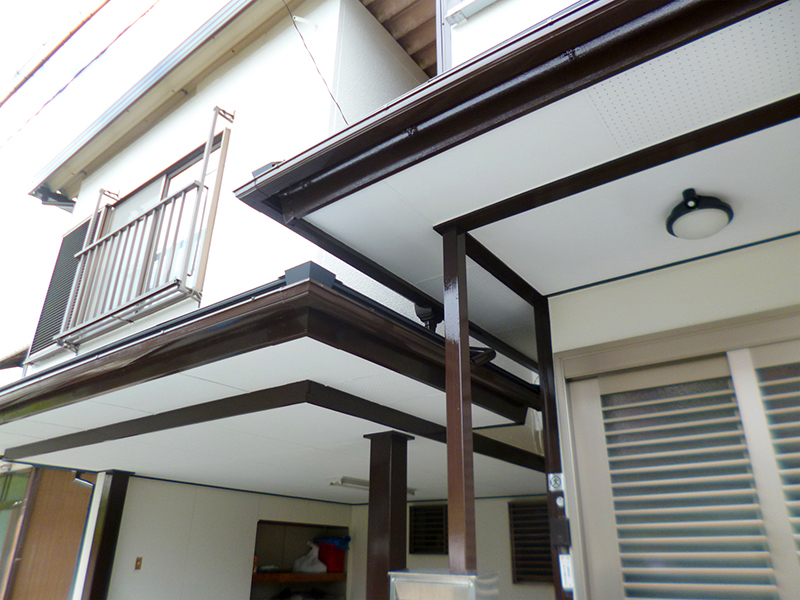 | 工事内容 | 屋根は既存の屋根を撤去せずに行う、カバー工法を採用して頂きました。このカバー工法は既存の屋根材を撤去&処分せず、新しい屋根材を上から施行していきます。また、外壁は高耐久のガイソー・フッ素4Fを塗装し、屋根・外壁ともに耐久性に優れたリフォームとなりました。他には錆びついたベランダの鉄部は、サビを除去しサビ止め+2液のウレタン塗装でがっちりと塗膜を形成していきました。 |