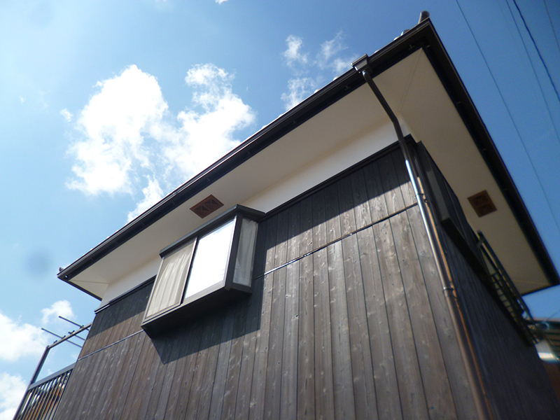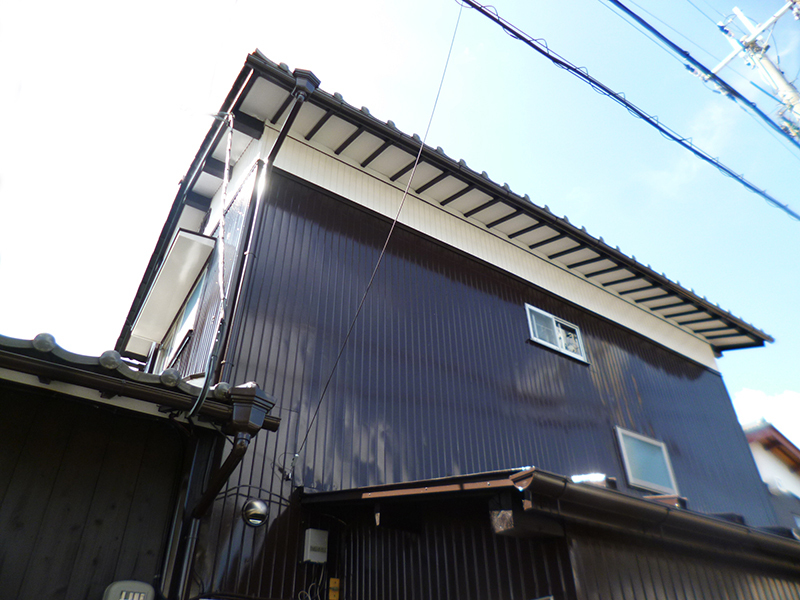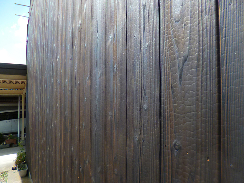 | 工事内容 | 現状の焼板の特に劣化のひどい面は新しい焼板に貼り替え、それ以外の箇所は塗装をしました。 カラートタンは塗装をして、軒天上はベリベリにめくれている方の建物は貼り替え、それ以外は塗装をしました。雨樋も部分的に新調しそれ以外は塗装しました。 焼板とカラートタンと軒天井以外にも、雨戸や破風板や垂木、漆喰部分、瓦棒屋根など、一通り塗装をしてきれいにしました! また軒下のコウモリが入ってきているであろう箇所は木をあてて出来る限りふさぎました。 |