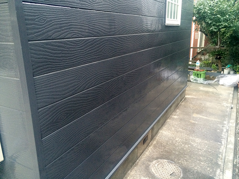 | 工事内容 | 外壁が金属サイディングだった為、2液のウレタン塗料を使い塗装することで、より強い外壁へと仕上げました。 色は白系統から黒系統に大きく変えることにより、大人っぽいシックなお家に仕上げました。 |