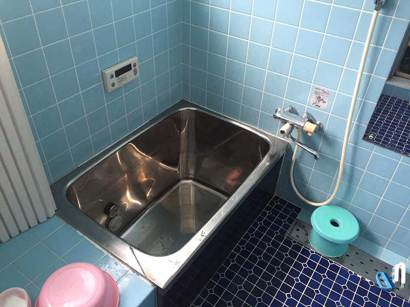 お風呂、給湯器、洗面化粧台を入れ替えました。 浴室は解体後、シロアリ被害があったため、柱や土台の補修をし、シロアリ工事もさせて頂きました。 洗面所は内装もきれいにしました。 外壁はシリコン塗装でお客様希望の明るい色に塗装しました。 足場を組み、高圧洗浄で外壁の汚れをしっかり落とし、3回塗りで仕上げていきました。 足場を組むにあたりテラスの波板を交換し、完成しました。