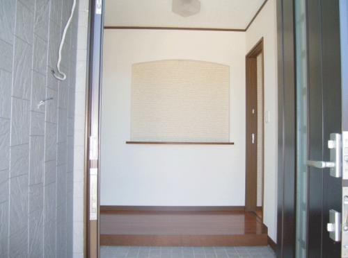 お客様を迎える玄関には壁厚を利用して、ニッチ(棚)を造りました。お気に入りの絵画を飾ったり、お花を飾ったり色々な用途に利用できるスペースです。