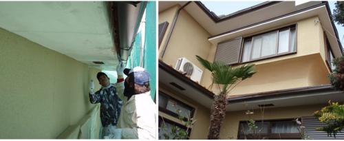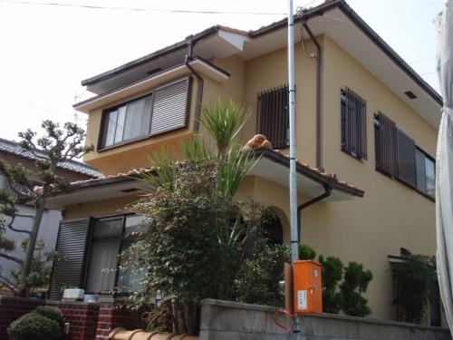 | 工事内容 | 気にされていた外壁のクラックも塗装業者さんの手によってホボ隠れ、ご主人様は「塗装屋さんによくしてもらえて喜んでいます」とお言葉を頂きました。外壁は3回塗り 屋根の軒は、ハケで細部まで塗り、雨樋&雨戸塗装もさせて頂きました。 |