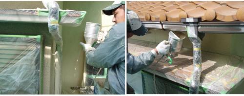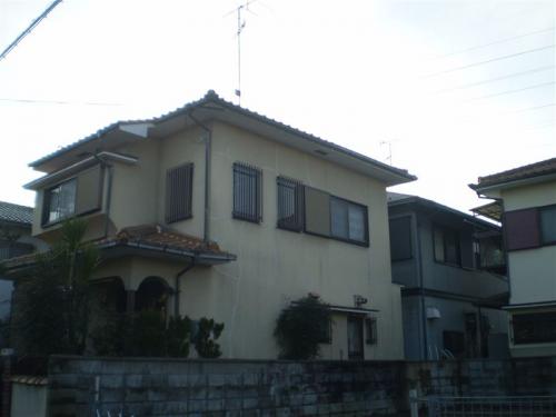 隣の工事現場の支柱が自宅の屋根瓦、外壁を破損。補修痕が気になり、この際外壁塗装と雨樋の塗装など家全体のリフォームをすることにされました。
