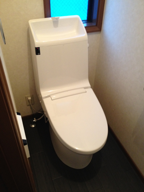 | 工事内容 | トイレの交換と床の補修。 トイレの床と廊下の床がバリアフリーになっていたので、劣化している床に補修作業を施してから床の上に クッションフロアを貼り、建具の位置に見切り材を付けさせていただきました。 既存のフローリングを解体して新しくフローリングを貼り直すと微妙に色の差が生じてくるので、今回はクッションフロアを上貼りさせて頂きました。 |