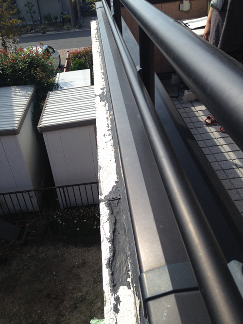 前の塗装で塗ったバルコニー下の帯部分の劣化が激しいので何とかしたい。