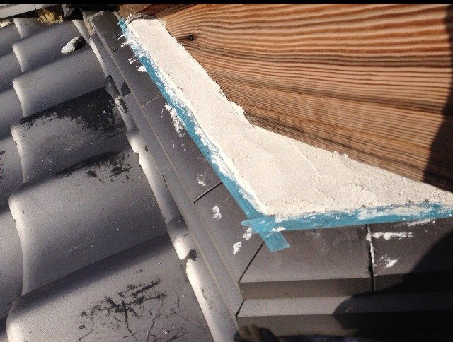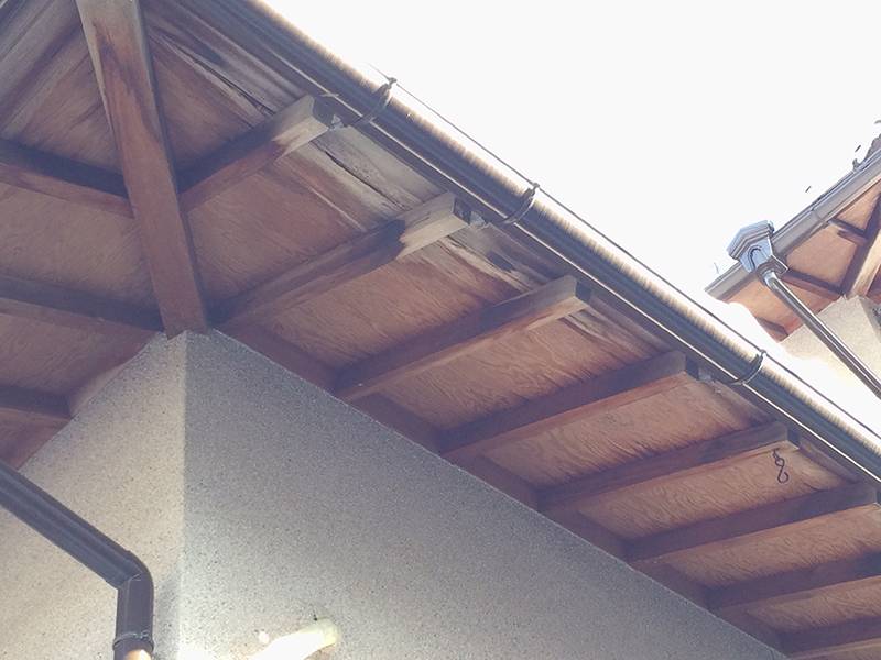 | 工事内容 | 雨染みがあるとのことでしたので、瓦屋さんに屋根に登っていただき、現状を見ていただきました。そうすると、台風などの影響で瓦がなくなっていたり、棟が曲がってしまっていたりしている状況でした。その結果、雨染みができてしまっていたようです。なので、補修や瓦の補充をしました。そして、軒天井が屋根からの水漏れで傷んできていたので大工さんに軒天上を張替えをしていただきました。また、フェンスは前回使用していたものが劣化してきてしまい解体してしまわれたので、新しくフェンスを設置したいとのことでした。既存の支え柱を撤去し、新設させていただきました。 |