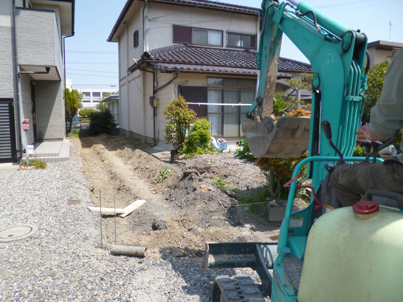 | 工事内容 | お隣様との境界が曖昧になっていたので、今回を機にお隣様立ち合いのもとフェンス位置を決めました。重機による掘削や樹木を撤去し、ブロックを2段積みその上にフェンスをしっかりと固定しました。またカーポートは既存の鉄製のものから現在主流のアルミ材のものへ、屋根も耐久性の高いポリカーボネートを採用し広々した駐車スペースを確保しました。最後の工程として地面に砕石を一帯にまき、雨の日も使いやすい外構になりました。 |