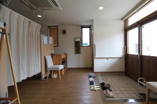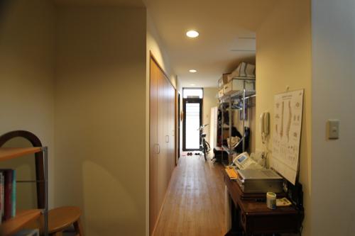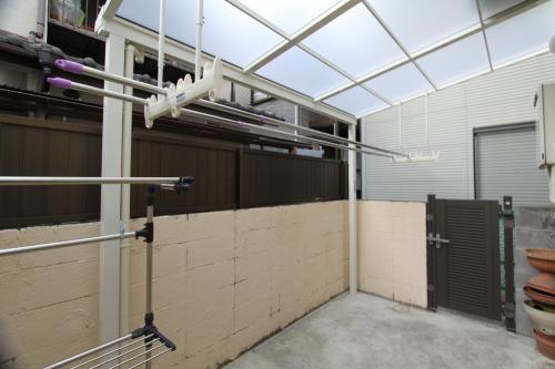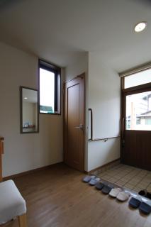 | 工事内容 | ?@以前はアコーディオンで仕切られていたのですが、今回は建具を付けました。鍵と灯りを取り付け利用しやすくしました。 ?A以前の玄関タイルは建物の中でスロープになっており、靴が脱ぎ難かったので、建物の中はフラットにし、建物の外にスロープを作りました。 ?Bポッカリと空いたスペースに壁を大工さんに作ってもらいそこにクローゼットを作りました。中はオーダーでパイプハンガーを付けたり、引き出しを付けたり収納がたくさん出来る様に仕上げました。 ?C洗濯物を家の裏で干されていたのですが、屋根がない為に雨の日は干せませんでした。テラスを取り付け、いつでも干せるようにしました。色はホワイトを選んで頂き明るいテラスになりました。 |