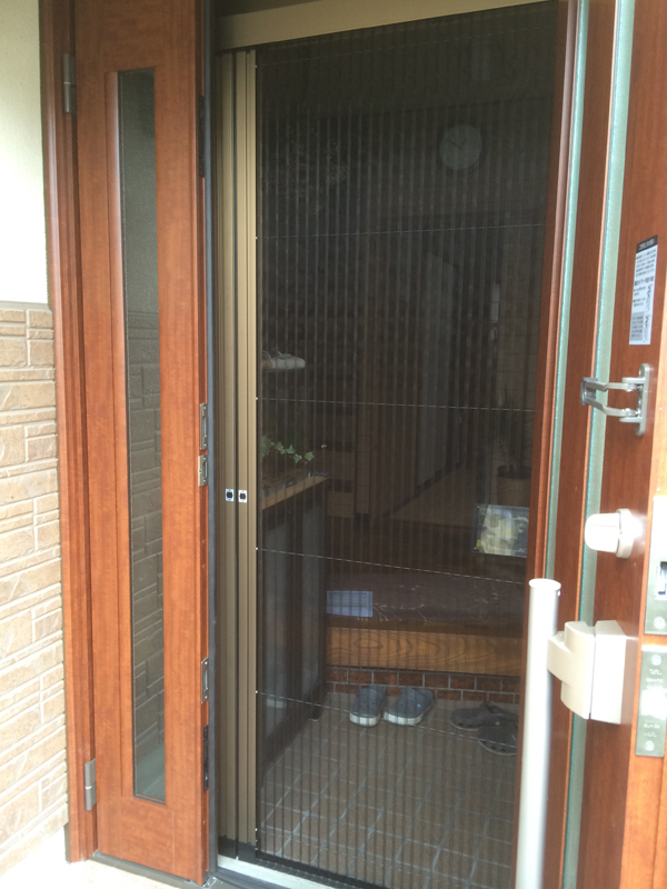 既存の玄関のドア・フレームなどを外せるだけ外し、LIXILのリフォーム用玄関ドア「リシェント」のM2型を設置しました。玄関ドアの交換は1日でできますが、入口の枠の下の部分を切り取った際に、モルタルで補修します。それが乾くまで少し時間を置くために、お家の内側に取り付ける網戸は別日にさせて頂きました。 畳の新調は前もって畳屋さんに精密に採寸をしてもらいます。1週間ほどで仕上がりますので、ご都合に合わせて納品させていただきます。 納品の際の荷物移動は畳屋さんと我々で行いますので、大きなタンスやお仏壇があっても大丈夫です!