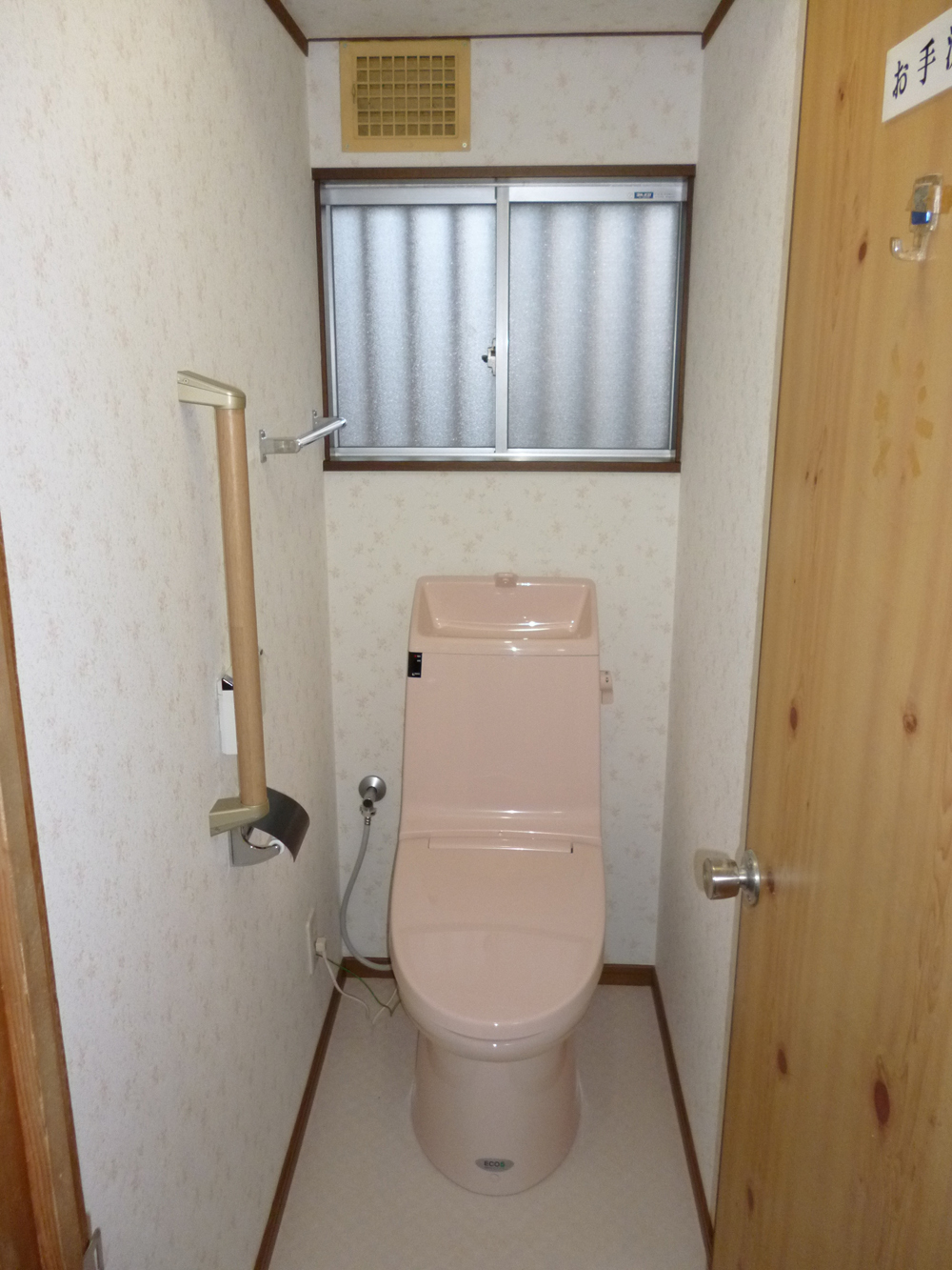 | 工事内容 | トイレの改修の上でまずは現地調査の時点で床下点検を実施させて頂きました。結果、床下の状態は良好な箇所が多かったですが、以前に白蟻の被害があった箇所がいくつか見受けられましたので、内容の中に白蟻防除工事の方も提案させて頂きました。ただし玄関ホールの下部が基礎構造の関係上、潜れない状態にあったので床補修に重ねて点検口を作らさせて頂きました。またトイレ改修に併せて 開き扉の勝手も外開きに替えさせて頂き、導線面でも使いやすい仕上がりが実現できました。使用したトイレはINAXの節水型トイレ ベーシア ピンク色で今までのイメージからガラっと変わる明るい仕上がりとなりました。 |