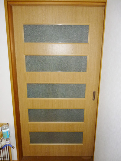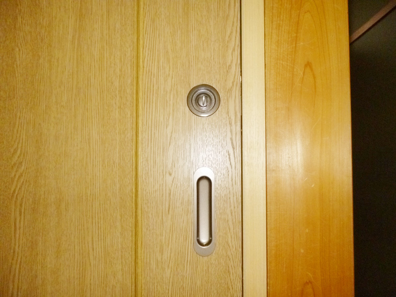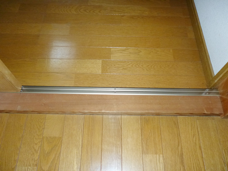 | 工事内容 | 既存は特注サイズで重厚感と高級感のあるデザインでした。長年の経年劣化と、建具の重みで動きが悪くなっていました。そこで、既存のレールは全てS型フロアレールで交換し、戸車も交換しました。また、鍵のかかりにくい状態はラッチ受けの位置が悪いために生じていたので、新しく受け調節用帆立を取付けました。 |