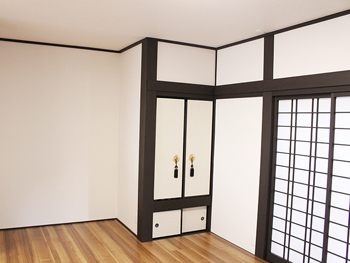 | 仏間だけ残して、床の間を無くして 食器棚を置くスペースにしました |