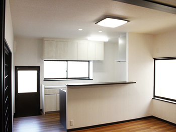 既存のキッチンは8帖間に壁付けで設置されていました。 |
