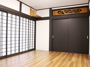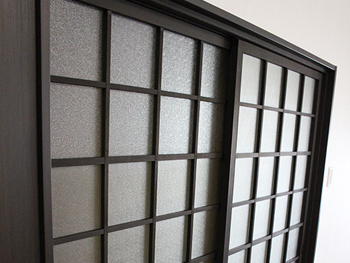 ガラス戸の格子や敷居なども塗装し、 シックに仕上げています |