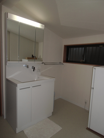 | 工事内容 | お風呂は増築をすることなく、内部にて広さを確保しました。以前は追炊き釜が室内にあったので、配管を外に投げてエコキュートを導入して、オール電化仕様にしました。 洗面室は、以前土間スペースだったことと、天井があまり高さの確保ができなかったので、低い床を組み極力天井高さをとりました。そして、洗面化粧台、洗濯機等を設置しました。 和室は、建具を入れ替え、使用した木はヒバです。格子と横桟のタイプですが、横桟は下に行くほど目が細かくなっていておしゃれです。 |