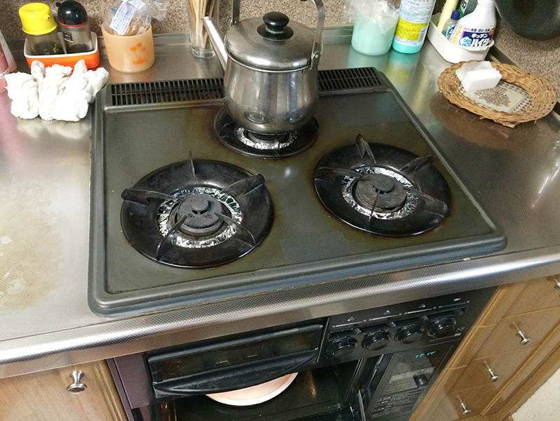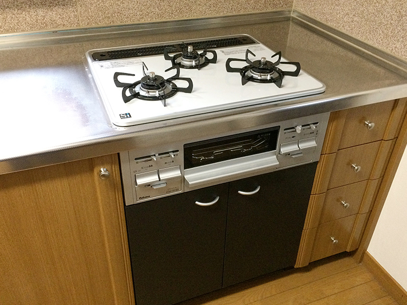 給湯器とトイレとコンロの交換をお考えでしたので、あと少しで「省エネ住宅ポイント」を上手く活用できると思い、キッチンの水栓の交換も一緒にされてはどうでしょうかとご提案させて頂きました!結果51,000ポイント分が適用となり、商品券に交換していただけます!! 工事はクロスの張替(壁)、水廻りの機器の交換だったので、ほとんどを一日でさせて頂き、次の日に工事後の掃除などの残工事をさせて頂きました。 既存のコンロは下がオーブンでしたが、この機に収納へと交換し、電子レンジを新しくご購入いただきました!