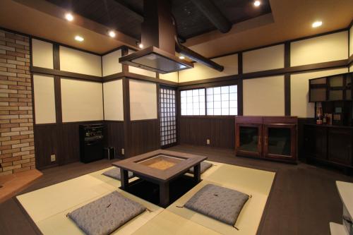梁をみせ、囲炉裏、薪ストーブ等を配置して、昔ながらの雰囲気をだしてほしい!!