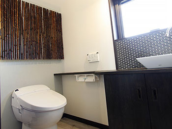 | トイレ 施工後 | トイレにも思い出の竹を使用 |