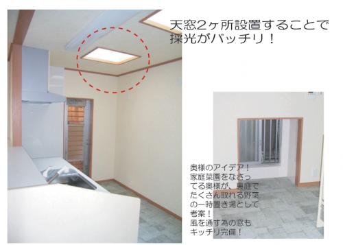 ご主人と奥様がそれぞれ“こだわり”をお持ちでしたので施工中はこちらの方が逆に“なるほど”と思えるアイデアに驚くこともしばしばありました。奥様は野菜を置くスペースのアイデアをだされたり、ご主人は大工工事に元々興味をもっておられたので、手作りの棚などを造られたりと、日々何かが造られている状態でした。 お客様と一緒になって創り上げたリフォーム工事でした。