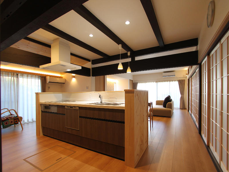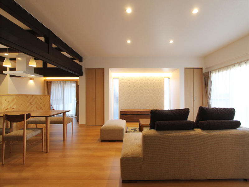 | 梁見せはお部屋のアクセントに | ダウンライトでやわらかい印象に |