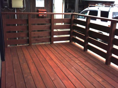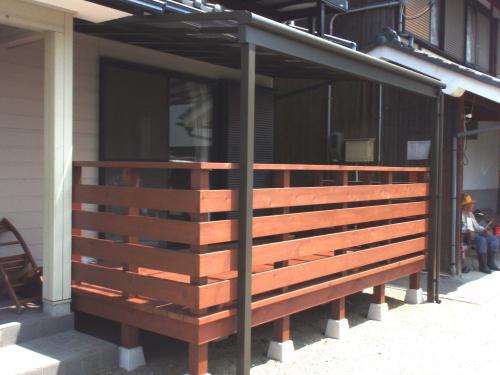 老朽化したウッドデッキを新しくしたかった。 広いウッドデッキに屋根を付けて快適空間に!! リビングと一体化したようなウッドデッキ!!
