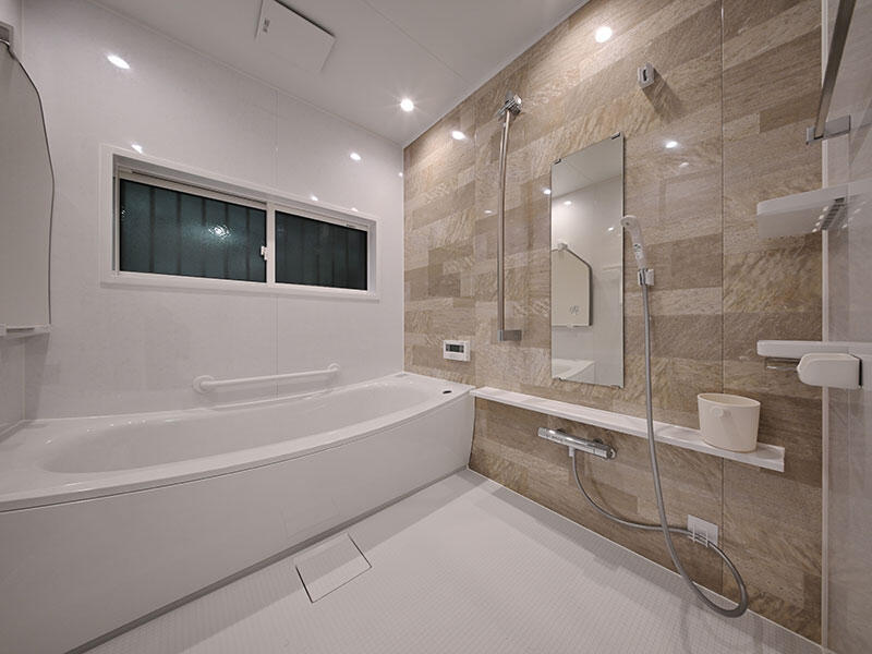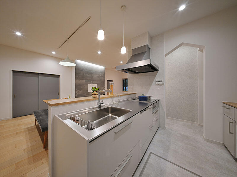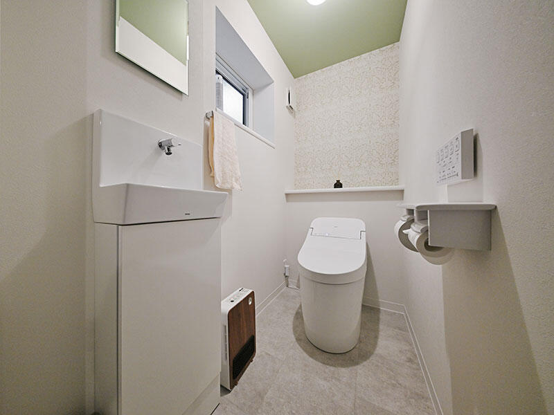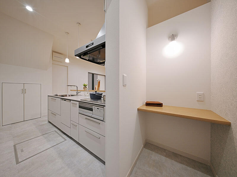 水まわりはTOTOの【ザ・クラッソ】【サザナ】【オクターブ】【GG3】をご提案しました。LDKには折り上げ天井を設け、折り上げ部分に【ザ・ウォール】を施工することでホテルライクな雰囲気を演出しました。さらにエコカラットプラスで高級感を演出しつつ、クロスにパステルカラーを取り入れ、ご夫婦のご希望に寄り添った空間に仕上げました。 |